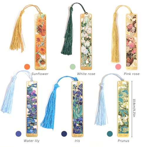 6 Pieces Metal Bookmarks with Tassel Golden Hollow Bookmark Van Gogh Oil Painting Theme Book Mark Bookmarks for Book Lovers Writers Readers Children Teens Men Women Adults Price in USA