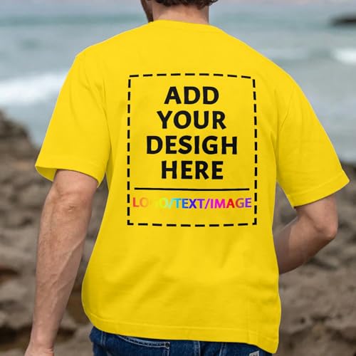 Custom T Shirts for Men Women Design Your Own Shirt Personalized Add Text Image Logo to Front and Back Printing Unisex Adult Shirts 2 Sides Printed Khaki