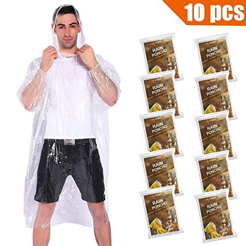 COOY Rain Ponchos with Drawstring Hood (10 Pack) Emergency D...