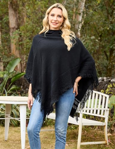 Ferand Ladies' Hooded Cape with Fringed Hem Crochet Poncho K...