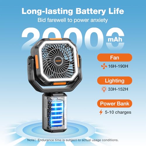 This versatile rechargeable work light features a powerful 10 000mAh battery for up to 22 hours of runtime with USB-C charging and the ability to charge your devices. It offers five lighting modes (white warm warm white front and strobe) with three brightness levels perfect for any task. The adjustable three-head design provides 1 000 square meters of coverage and the light can be used as a tripod work light flashlight or magnetic light. Compact and lightweight it's ideal for outdoor activities and work sites.