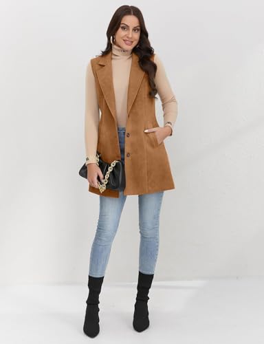 IDEALSANXUN Suede Vest for Women Fall Fashion Outfits Winter Clothes Long Vest Sleeveless Blazer Jackets Trench Coat Suede Brown XL