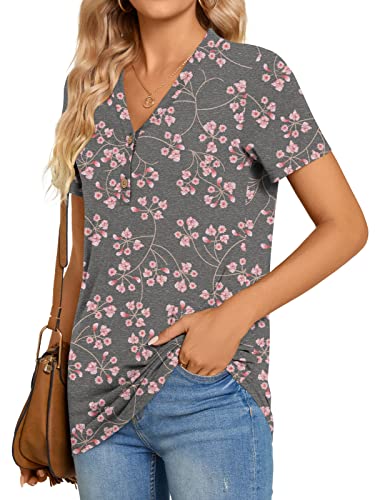 BISHUIGE Womens Henley Tunic Tops Button Up T-Shirts Short S...