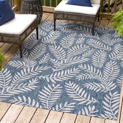 Nevis Palm Frond Indoor/Outdoor Navy/Ivory 8 ft. x 10 ft. Ar...