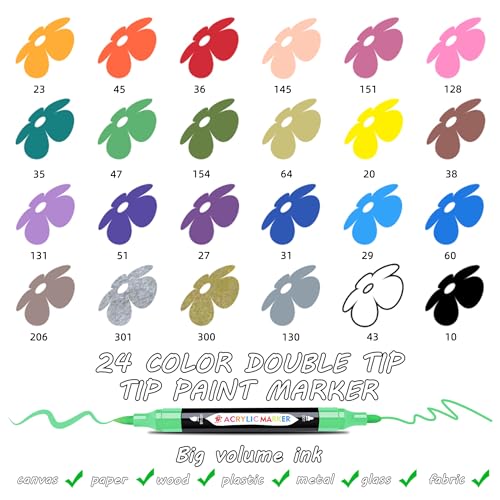 Acrylic Paint Pens Markers 30 Colors Dual Tips Waterproof Paint Markers For Rock Painting Fabric Metal Glass Wood Canvas Ceramic Plastic Non-Toxic & Odor Premium Art And DIY Craft Supplies Price in USA