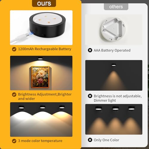 3 Pack Picture Lights for Wall Rechargeable Battery Operated...