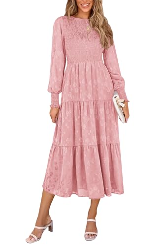 PRETTYGARDEN Women's Fall Midi Dress Long Sleeve Floral Smoc...