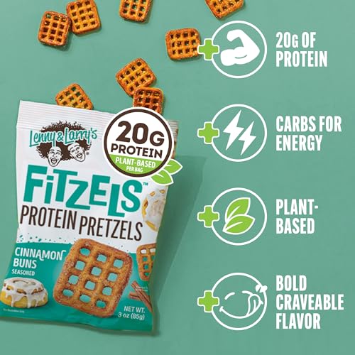 Lenny & Larry's FITZELS Protein Pretzels (Cinnamon Buns) 8 Individual Bags 3 oz Each – High Protein Snacks with 20g of Plant Based Protein – Healthy Vegan Kosher Keto Pretzels – Delicious Salty Taste Price in USA