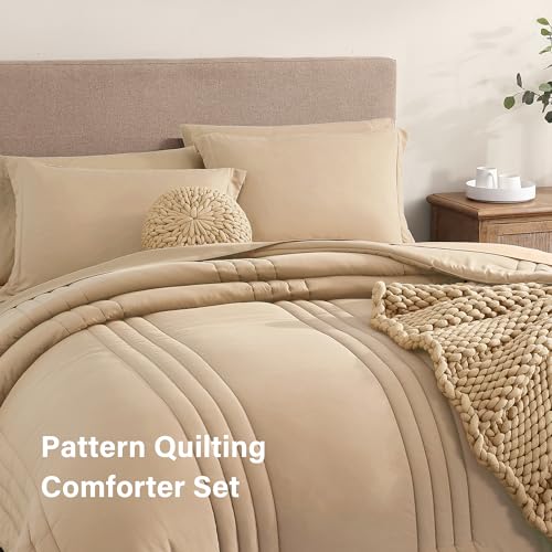 Monbix King Size Comforter Set - 7 Pieces Peach Pink Bed in a Bag King Bedding Sets with Comforters All Seasons Down Alternative Comforter Bed Set with Sheets Pillowcases & Shams (102\"x90\") Price in USA