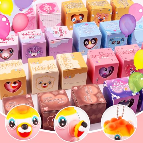 24 PACK Valentines Day Gifts for Kids Valentines Cards for Kids Classroom with Animals Pop Fidget Toys Valentines Exchange Gifts for Kids Classroom Valentines Party Favors for Boys Girls