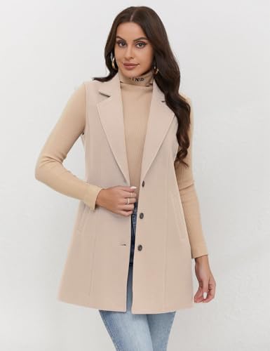 IDEALSANXUN Long Vest for Women Sleeveless Blazer Jackets Trench Coat 2024 Wool Coat Jackets Fall Fashion Outfits Winter Clothes Outerwear Pure Beige M