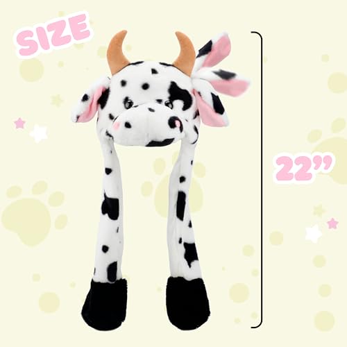 Bubblepompom Animal Hat with Ears Moving Jumping Pop Up Beating Hat Plush Holiday Cosplay Dress Up Funny Gift for Kids (Cow) Price in USA