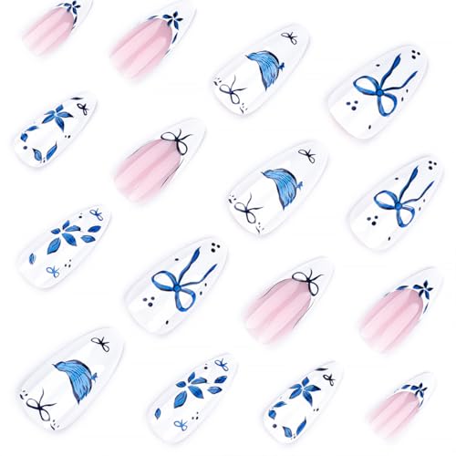 Valentine's Day Press on Nails Medium Square Fake Nails with Heart Bow Designs Pink French Tip Nails Press ons Glossy Glue on Nails Cute Acrylic Nails Nude False Nails Stick on Nails for Women 24Pcs Price in USA