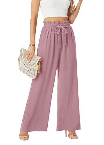 FREEOAK Summer Pink Palazzo Pants for Women Work Casual for ...