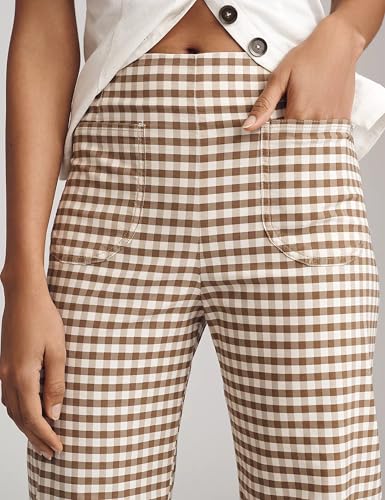 ACCPUR Women's Plaid Flare Pants Summer Casual Gingham Elast...