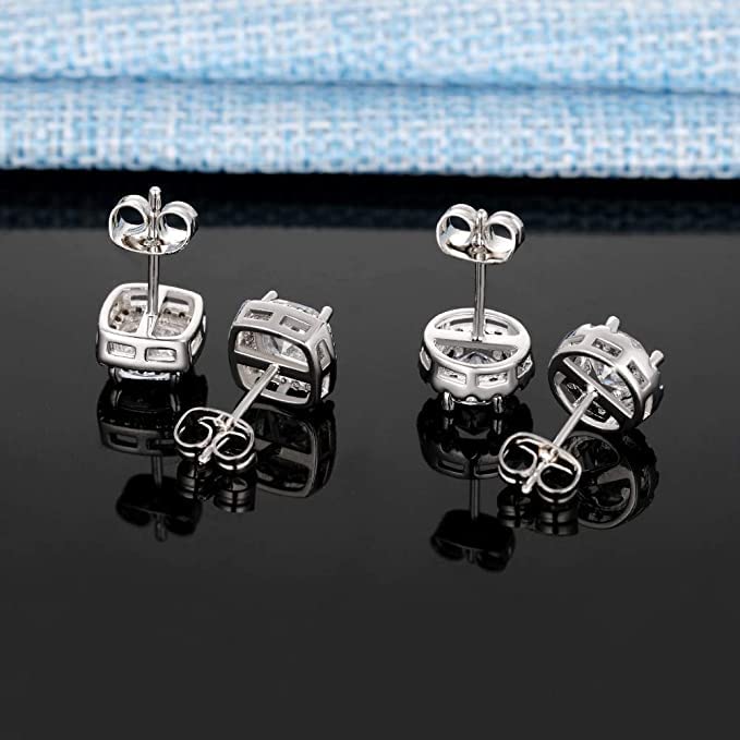 womens gifts for christmas Women Synthetic Diamond Earrings 18K White Gold Plated Round Square Cubic Zirconia Hypoallergenic Studs Earrings deals of the day clearance saved for later items Price in USA