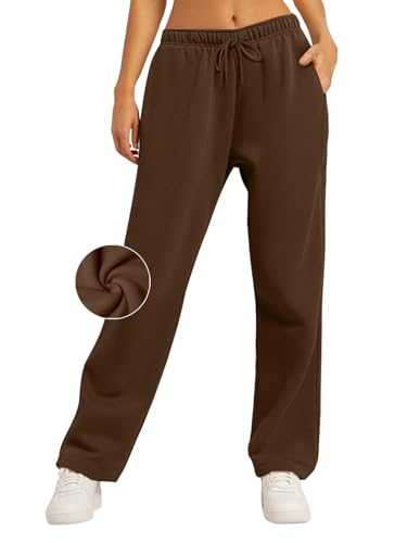 AUTOMET Women's Wide Leg Sweatpants Fleece Lined Baggy Strai...