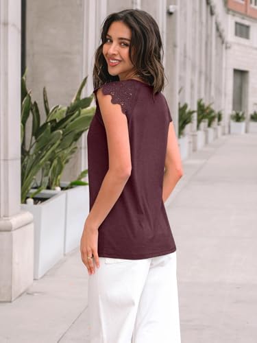 AUTOMET Women's Lace Sleeveless Crew Neck Tops WineRed L