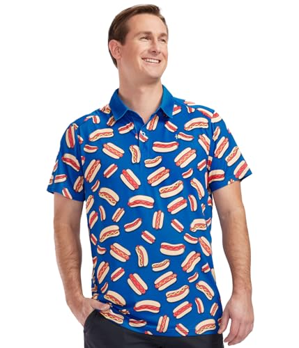 Tipsy Elves Navy Hot Dog Golf Polo for Men Size Large