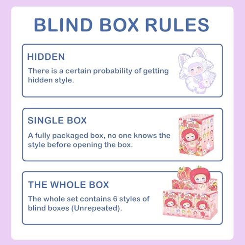 Nommi Loveliness Never Ends Series. 6 regular figures and 1 hidden edition to collect. Enjoy the exciting moment of unboxing! Hope you could get your favorite one. NOTE: The figures of the blind boxes are shipped randomly and can't be specified. Return is not supported once the packaging box is opened for it can't be sold again after being opened.