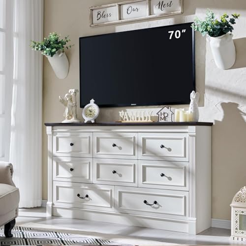 Fluted Dresser for Bedroom with 8 Drawers 48"" Wide Modern Chest of Drawers with Metal Handle Wooden Dresser TV Stand Wood Closet Clothes Storage Organizer for Living Room Hallway Natural Oak Price in USA
