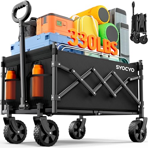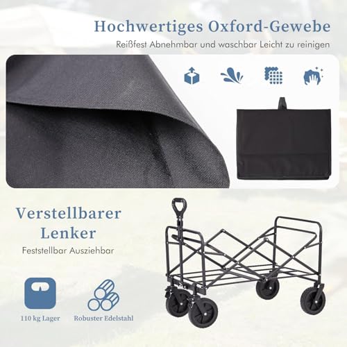 Collapsible Folding Wagon Cart Heavy Duty Garden Cart with All Terrain Wheels Portable Large Capacity Utility Wagon Cart for Camping Fishing Sports Shopping
