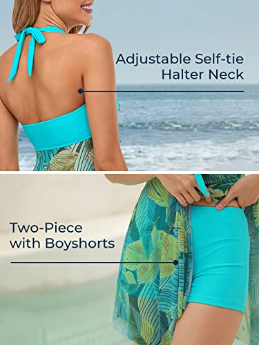 MiYang Women Tankini Swimdress with Boyshorts Two Piece V Ne...