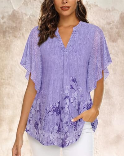 CATHY 2024 Womens Summer Tunic Tops Short Sleeve Casual T-Sh...