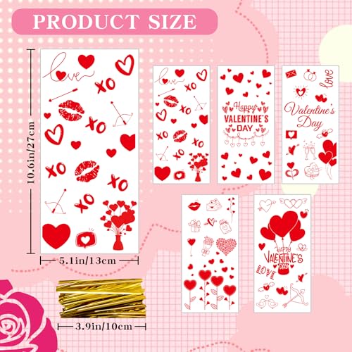 Valentines Bags - Valentines Goodie Bags 180pcs Valentines Candy Bags with 200pcs Twists for Snacks Cookies Candy Packing Valentines Cellophane Treat Bags for Classroom Parties Coworkers Kids Price in USA