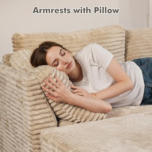 OVIOS 67''x48'' Chaise Lounge Chair Indoor Oversized Upholstered Sofa Bed Sleeper Couch Reading Chairs Fluffy Plush Faux Fur Cloud Sofas Couches for Living Room Beige