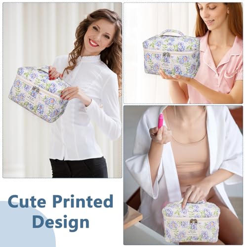 1.Spacious Design: Our Initial Makeup Bag measures 11.5\"\"L*3.7\"\"W x 7.5\"\"H making it an ideal size to store all your essentials such as makeup brushes mascara lipstick and wipes. 2.Durable and Stylish: Crafted from canvas material. This makeup bag is made of canvas material and comes with a smooth zipper and tassel pendant for secure closure.The flower wreath and letters are both exquisitely embroidered and finely crafted ensuring that our personalized makeup bag not only looks great but also withstands daily use. 3.Versatile Storage: This personalized cosmetic bag is perfect for more than just makeup. It can also hold earphones mobile phones and change making it a versatile accessory for daily outings or travel. Slip it into your handbag backpack or suitcase with ease. 4.Thoughtful Personalized Gifts : Looking for personalized gifts for women? This monogrammed makeup bag makes a wonderful gift for bridesmaids birthdays and special occasions. It's a