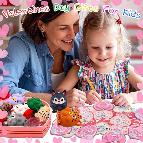 Celebrate Valentine’s Day with our 28PCS Heart Pop Fidget Toys and Valentine’s Day Cards Set! Perfect for Kids Valentines Day Gifts for School this set includes 28 vibrant heart-shaped pop toys and 28 matching cards allowing children to express their feelings through fun and interactive exchanges. Why Choose This Set for Kids? Valentines Day Cards for Kids School: Each card is designed with thick colorful paper making them perfect for writing sweet messages. Fun and Interactive Gifts: These heart fidget toys provide sensory fun and calmness making them a hit at any party or classroom exchange. Perfect for Classroom Activities: Compact and lightweight ideal for sharing during school events or using as party favors prizes or keepsakes. Durable and Safe for Kids: Made of high-quality silicone these toys are built to last and safe for all ages. Make this Valentine’s Day unforgettable for your kids classmates and friends! Order now to create moments filled with fun love and joy