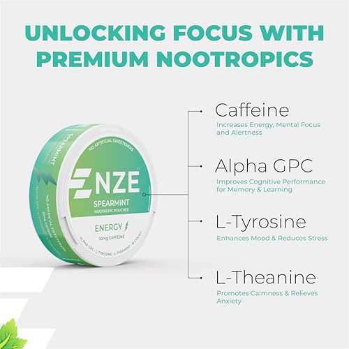 NZE Caffeine Nootropic Pouches (Spearmint) - Nootropic Energ...