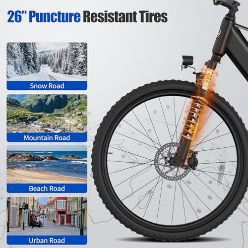 Electric Bike ZA02 750W Peak Motor 26'' City Cruiser Ebike 556Wh Removable Battery Up to 65 Mi Range 22 MPH 7-Speed and Front Suspension Electric Bike for Adults