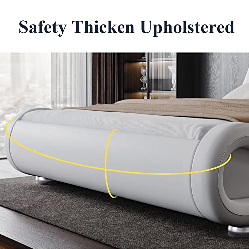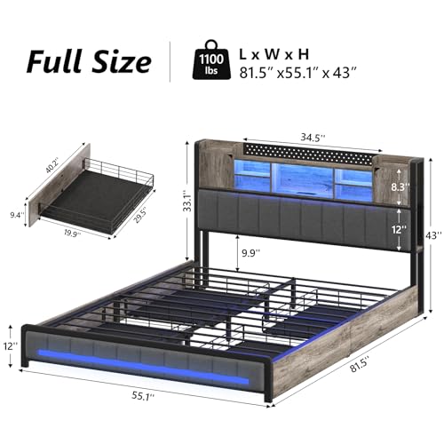 Queen Size Bed Frame with 4 Storage Drawers and LED Lights Upholstered Platform Bed with Adjustable Headboard and Charging Station Metal Slats Support No Box Spring Needed Easy Assembly White Price in USA