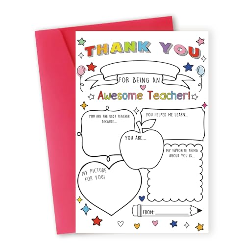 Hongshan Thank You Card for Teacher Fill in the Blanks Funny Teacher Appreciation Card Gift Teacher Thank You Gifts Card from School Kids Students with Envelopes