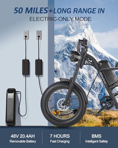 1500W Electric Bike for Adults Full Suspension Long Seat Dirt Bike with 20\" Fat Tire Max 28/31MPH & 37-150 Miles 15.6/20.4/31.2AH Battery Moped Style Ebike for Snow Mountains Road