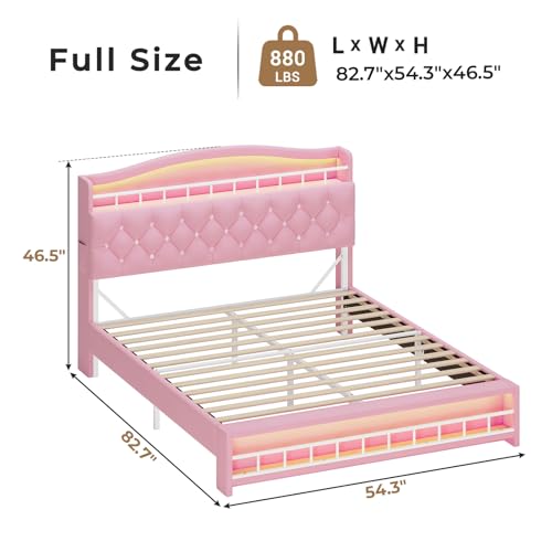 HAUOMS Full Bed Frame with LED Lights Princess Velvet Uphols...