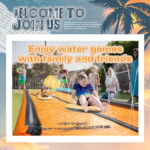 Slip Water Slide 22ftx2 Lane Slip Water Slide for Kids Backyard Lawn Summer Water Toys Outdoor Sprinkler with 2 Sliding Racing Lanes and 2 Inflatable Bodyboards