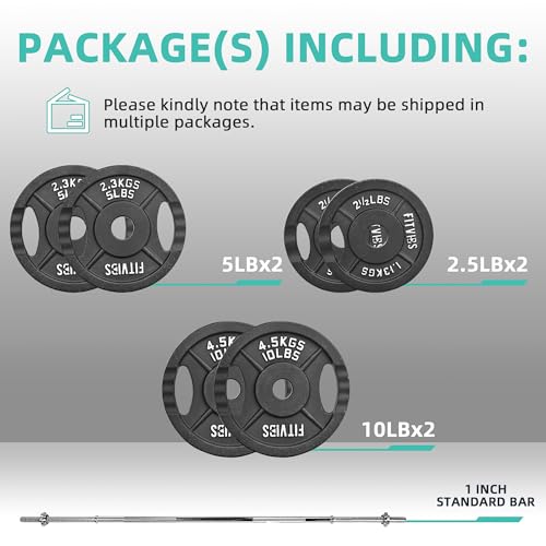 Fitvids Cast Iron 1"" Standard Weight Plates Including 5FT S...