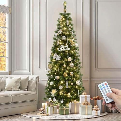 YITAHOME Pre-Lit Artificial Pencil Christmas Tree Fraser Fir...