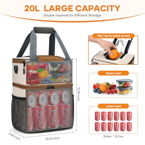 Maelstrom Cooler Backpack 36 Cans Insulated Backpack Cooler Soft Leakproof Double Deck Cooler Bag Lightweight Lunch Backpack for Men & Women Perfect for Beach Travel Camping & Work-Beige gray