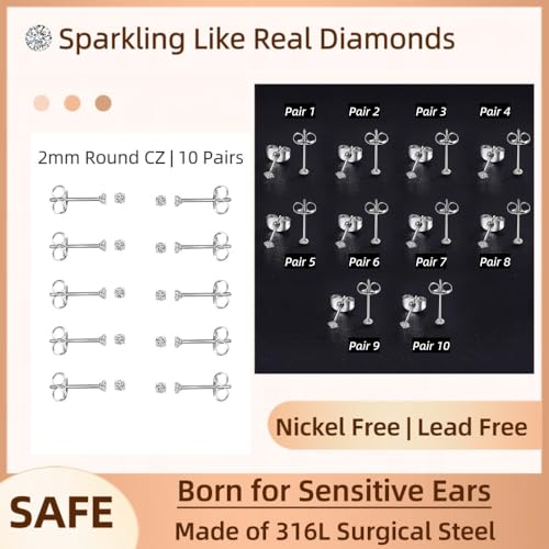 FriBasics 2mm Small Stud Earrings for Women Simulated Diamon...