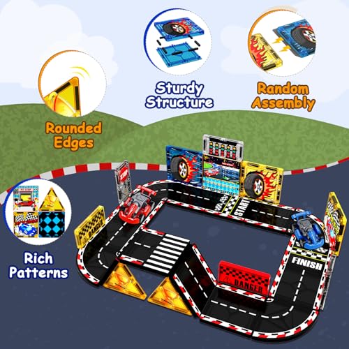 Magnetic Tiles Road Set Race Track with 2 Car Magnetic Car R...