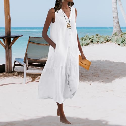 ZOCANIA Summer Dresses for Women 2024 Sleeveless V Neck Casu...