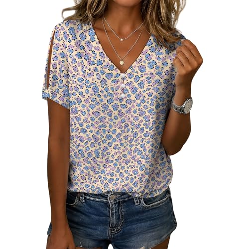 Floral T Shirt for Womens V Neck Short Sleeve Tee Dressy Col...