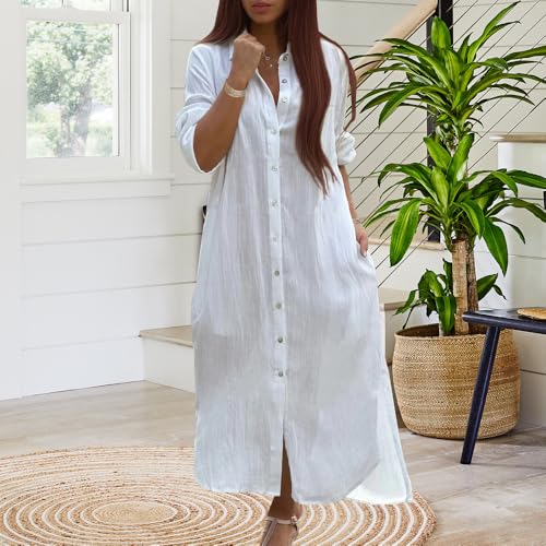ZOCANIA Women Cotton and Linen Shirt Dress Button Down Dress...
