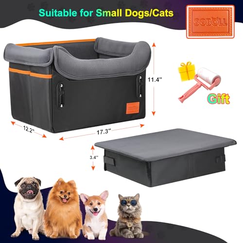 JOEJOY Elevated Dog Car Seat for Small/Medium Dogs up to 35 lbs Memory Foam Pet Booster Seat with Detachable Washable Cover Portable Travel-Safe Bed for Cars with Safety Belts and Storage Pockets