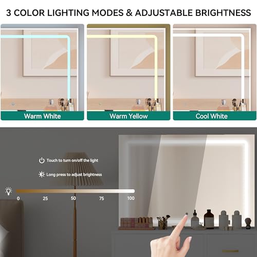 YITAHOME Vanity Desk Makeup Station with Expansive Light-Controlled Mirror Drawers Cabinets Adjustable Shelving Stool