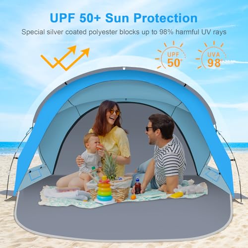 Gorich Beach Tent with Canopy - Easy Setup 3-8 Person Portable Sun Shelter UPF 50+ UV Protection Sun Shade Lightweight & Compact Beach Cabana for Family Travel